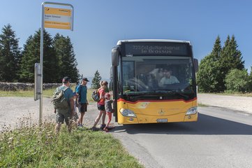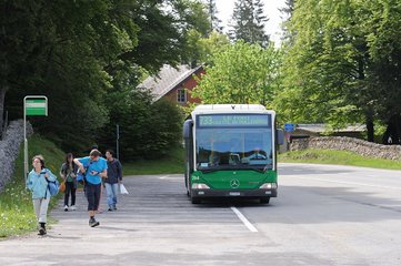 Drei Zuglinien und mehrere Buslinien erschliessen den Parc Jura vaudois. Bevorzugen Sie für Ihre Besuche und Wanderungen den öffentlichen Verkehr: mit seinem Angebot "Reliez les deux cols!" schlägt der Parc Jura vaudois den Wanderbegeisterten eine Wanderung an, welche die beiden Gipfel Col du Marchairuz und Col du Mollendruz verbindet. Mit den Verbindungen von PostAuto (Linie 10.720) und MBC (Linie 10.750) ist es möglich, auf den einen Gipfel zu fahren und vom anderen herunterzufahren, während man sich zu Fuss zwischen den beiden Gipfel bewegen kann.